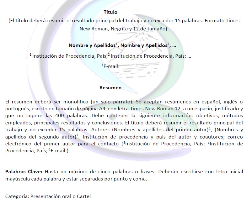 El comité científico recepcionará las propuestas, y tiene el derecho a determinar la modalidad de participación (virtual o presencial) y la forma de presentación (ponencia, poster, otros). Los estudiantes deberán acreditar su condición mediante carta emitida por su institución.